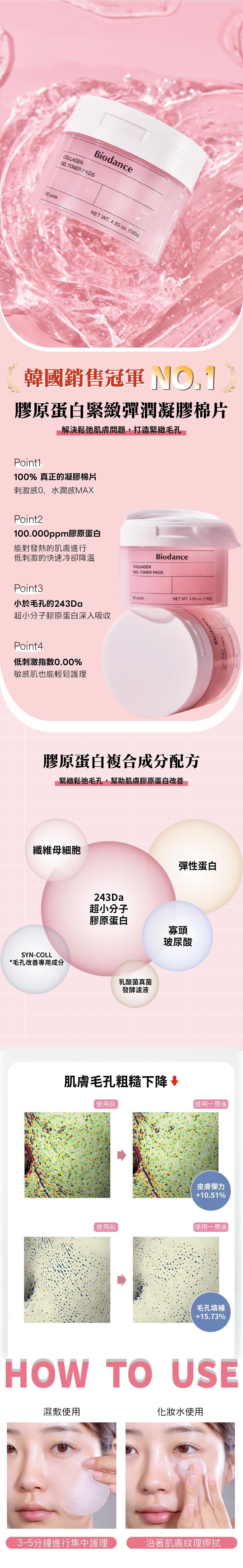 ✨韓國首創100%凝膠棉片,富含膠原蛋白水與243Da超小分子膠原蛋白