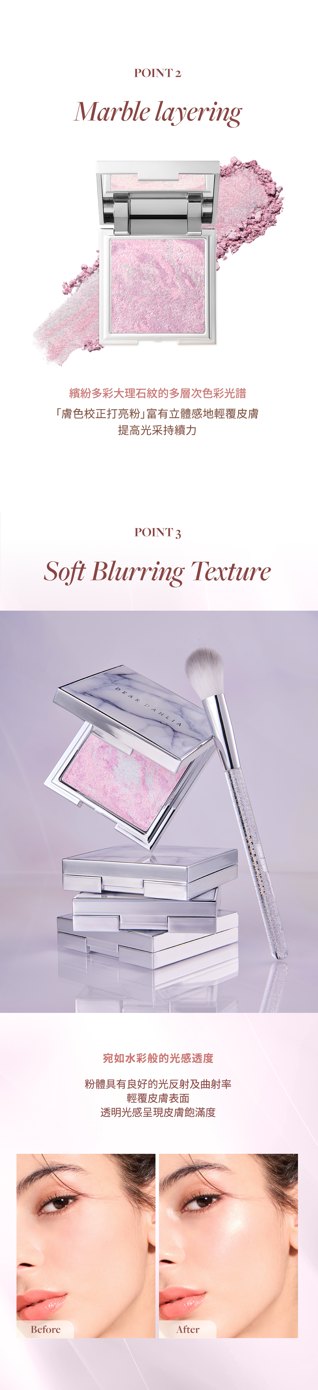 三色大理石紋混色,一盤打造層次感高光,光感透度佳,不死白不厚重💫