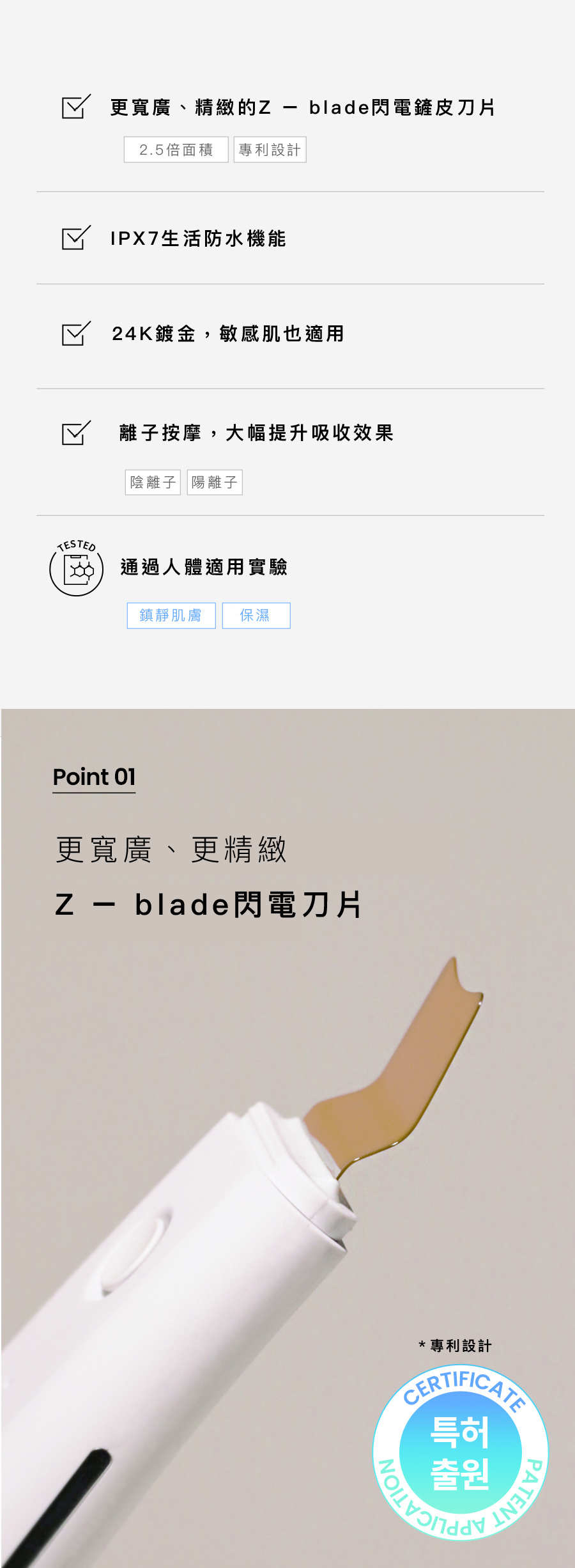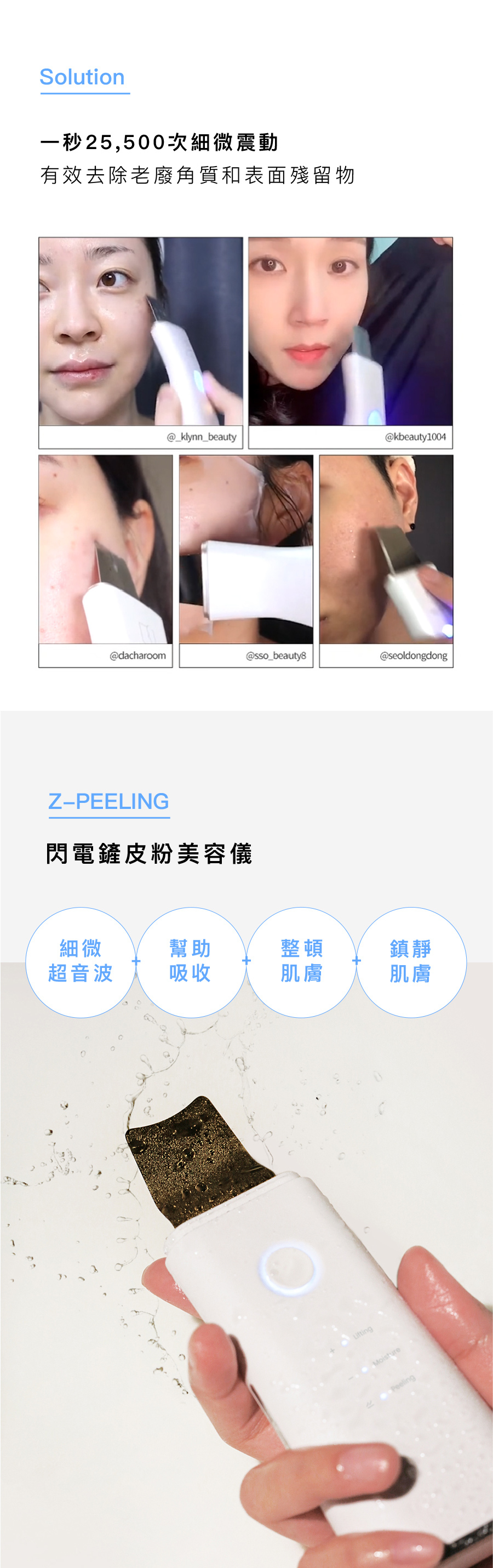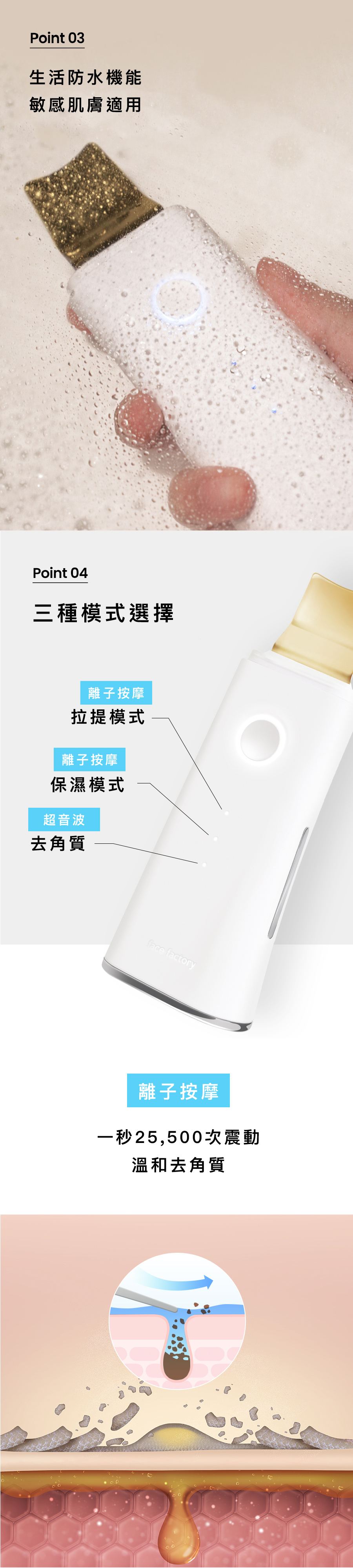 -它可以在沒有太大刺激的情況下去除黑頭皮脂甚至深入毛孔用超音波深層清潔
