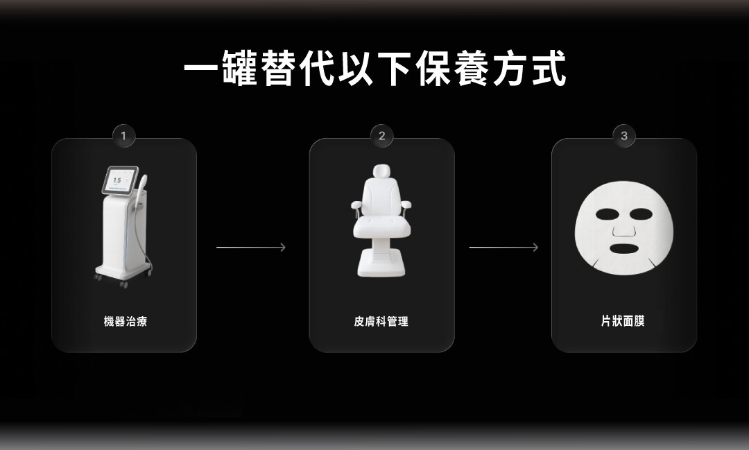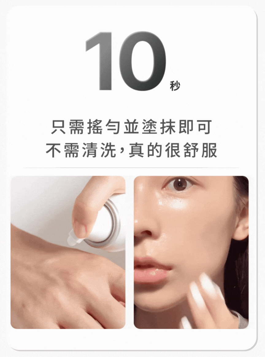 「每天快速保養,感受透亮緊緻」、「3秒完成等同多片面膜的清爽感」