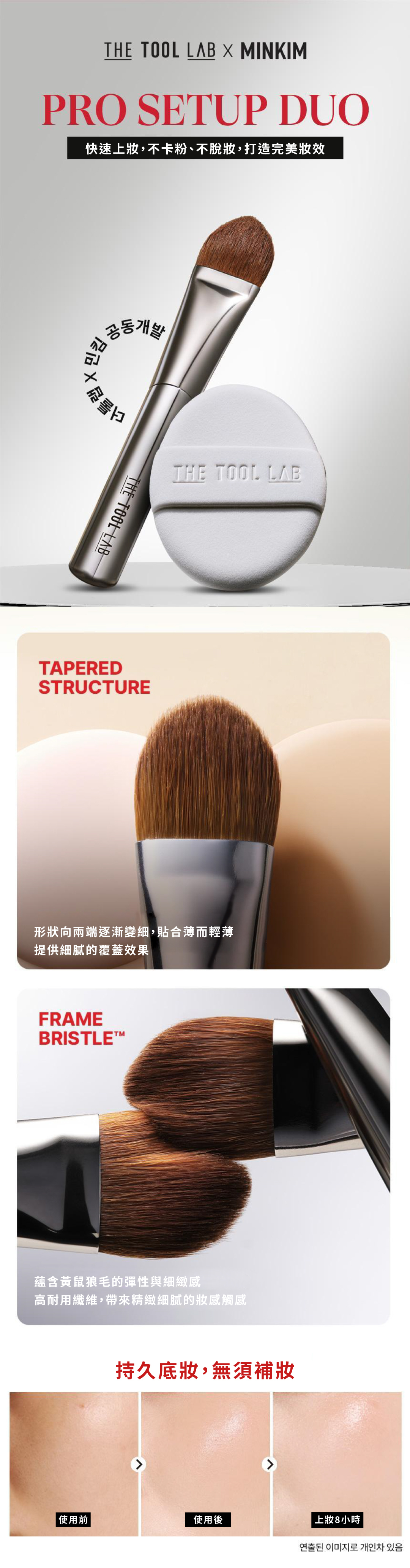 ✨專業級底妝工具:結合錐形結構刷具與高彈力粉撲,打造零死角、輕薄服貼的妝感